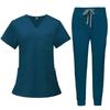 This scrub suit is designed specifically for anesthesiologists, featuring a convenient short sleeve top and long pants set. Crafted from high-quality polyester, it ensures both comfort and durability in demanding medical environments. The suit includes a double-layer multifunction pocket design, providing ample storage for essential tools and items. The breathable material ensures ease of movement while maintaining a professional appearance throughout long shifts.