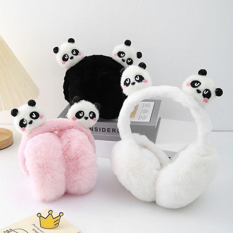 Cute Panda Folding Ear Cups for Children,Princesses Plush Ear Cups for Girls Winter, and Warm Ear Cups for Students Cycling
