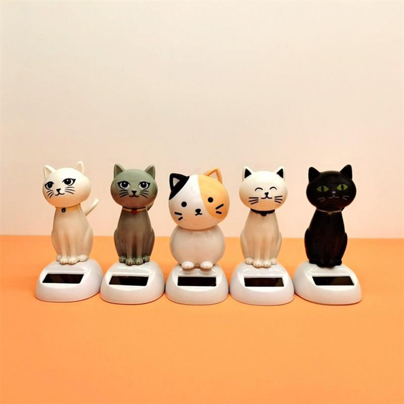 New Solar Powered Swing Doll Toy Cute Cartoon Cat Shaking Head Doll Auto Interior Dashboard Decor Car Ornament Doll Accessories