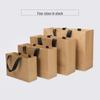 In-Stock Kraft Paper Tote Bag with Solid Color Ribbon Handle for Gifts and Shopping