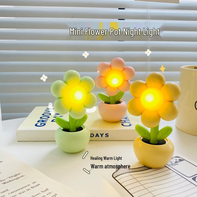 Mini Flower Night Light: Cute Bedroom Bedside DIY Ornament, Creative Graduation Gift Table Lamp, Cream Glue Finish