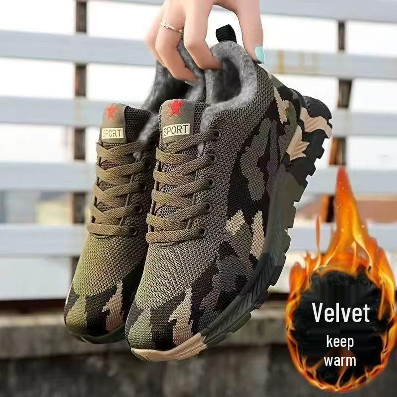 Breathable Camouflage Fleece-Lined Outdoor Shoes for Men & Women - Non-Slip Hiking & Construction Footwear for All Seasons