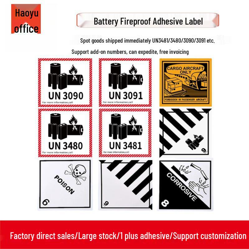 100 Sheets of Lithium Battery Fireproof Labels: UN3481, 3480, 3090 Warning Labels In Stock