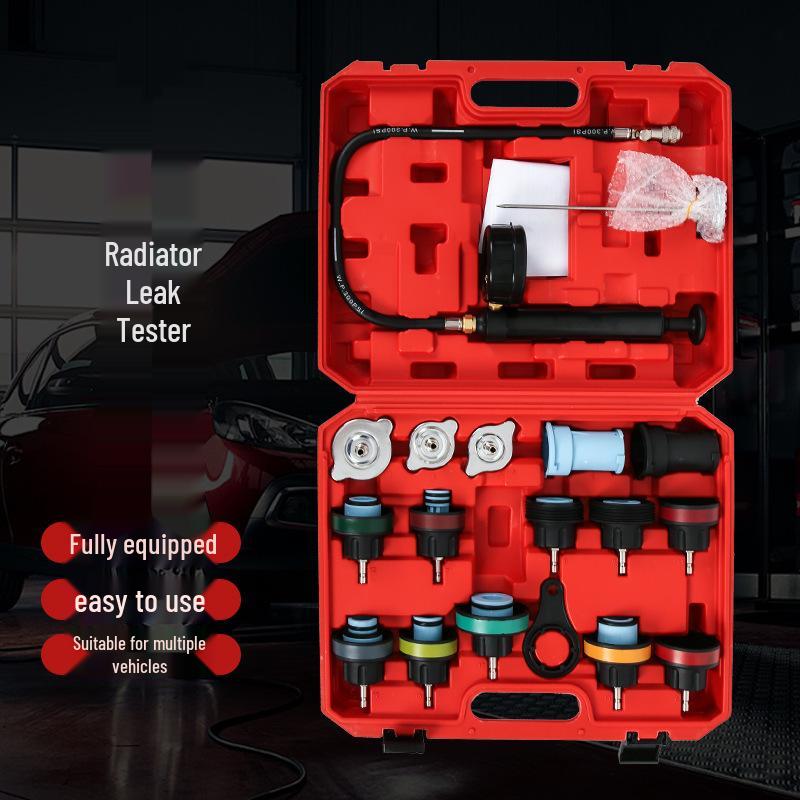 34-Piece Car Radiator Pressure Tester & Coolant Leak Detection Kit with Vacuum Pressure Gauge