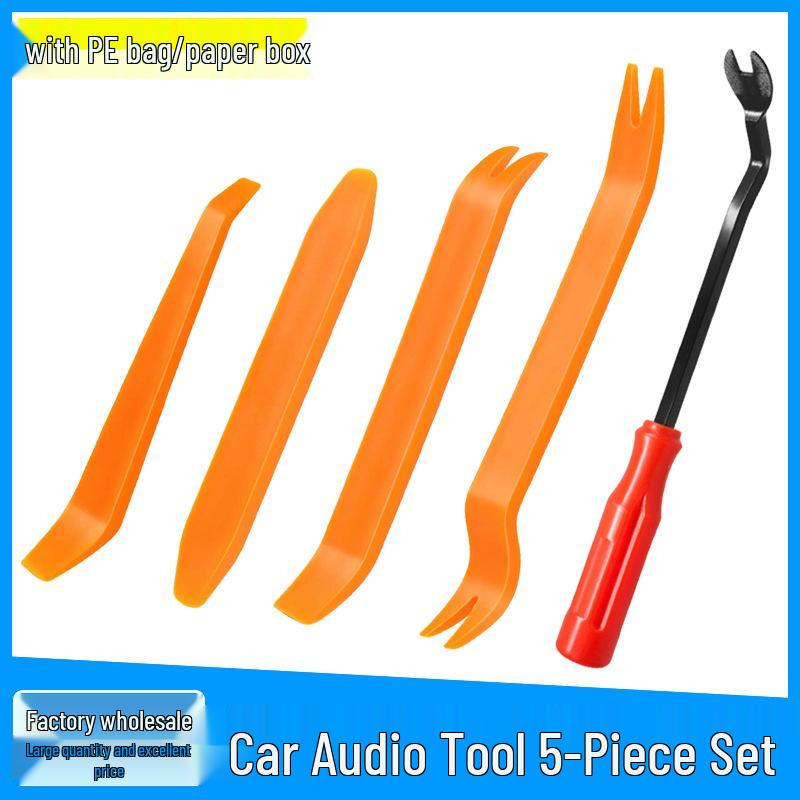 Car Audio & Door Panel Pry Tool Set: 6-inch Trim Clip Removal, 5-Piece Plastic Pry Bar Kit
