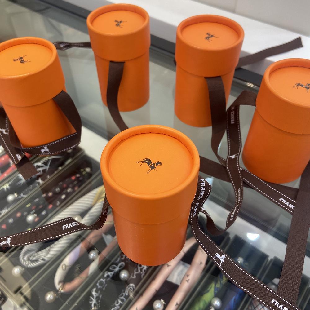 Exquisitely Decorated Orange Round Gift Box with Ribbon Neckerchief