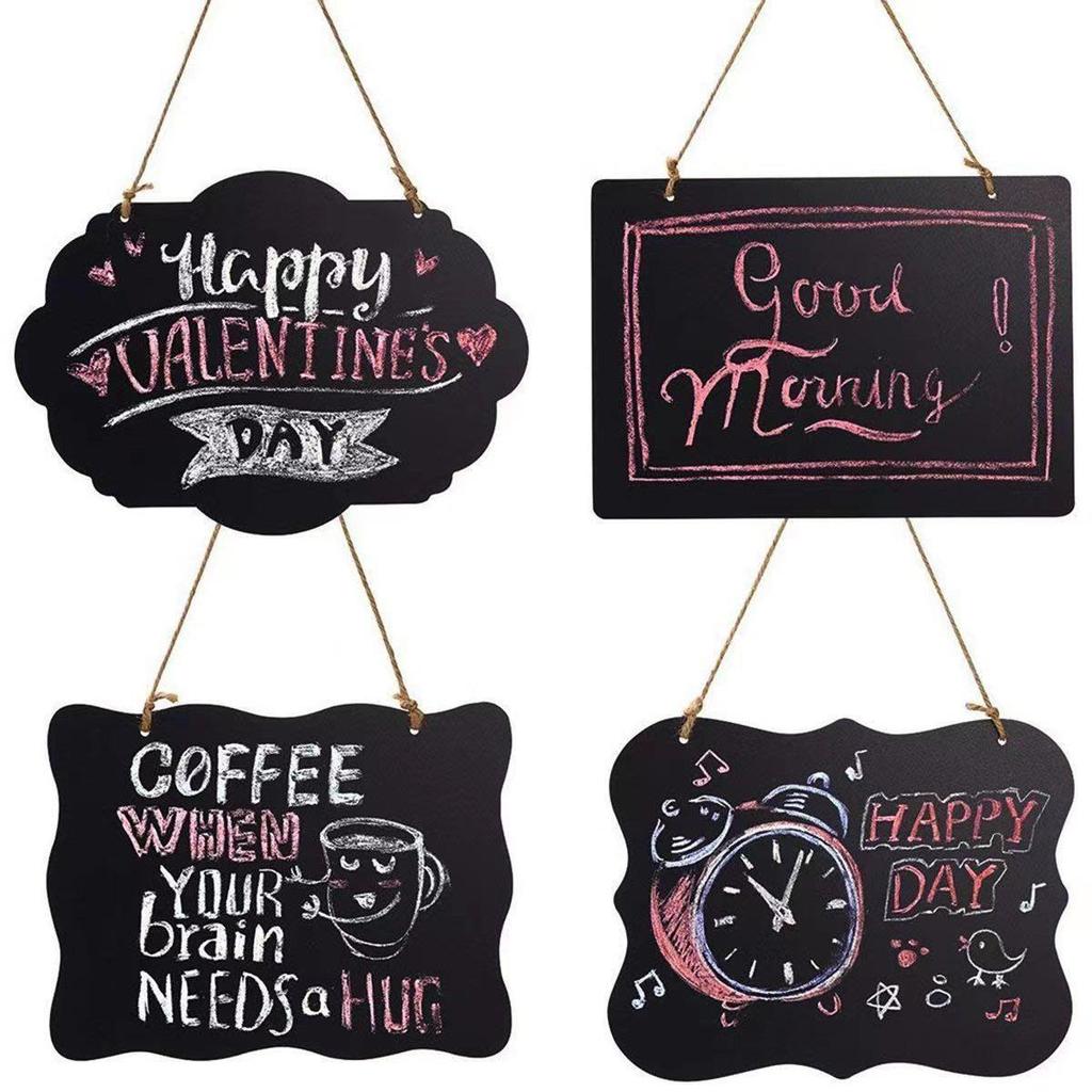 Double-Sided Wooden Chalkboard Labels with Hanging Rope for Messages, Restaurants, or Decorations