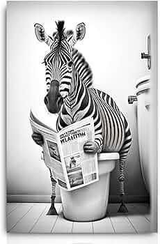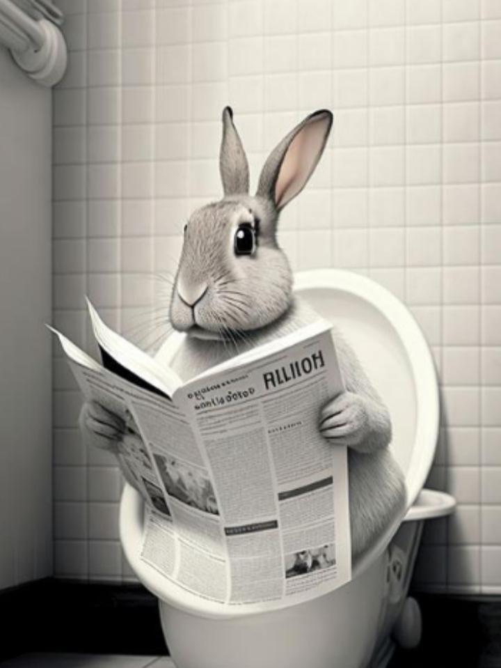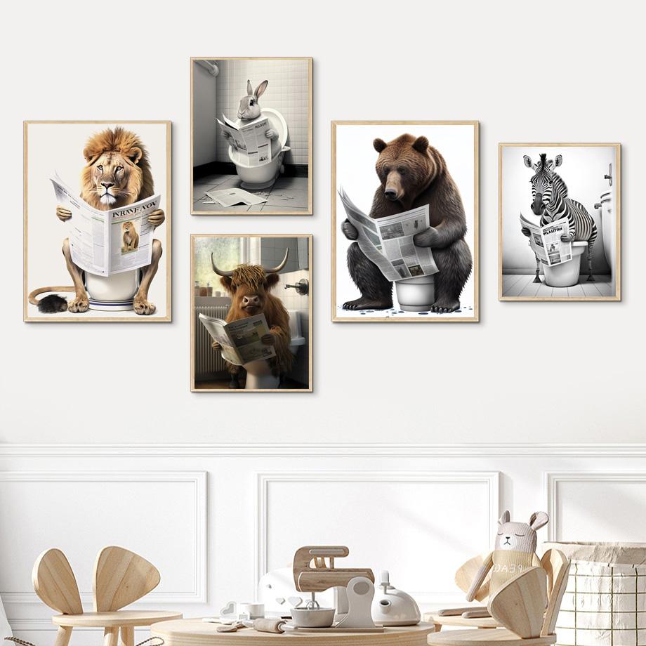 Lion Rabbit Bear Sitting On The Toilet Reading A Newspaper Posters And Print Wall Art Canvas Painting Funny Bathroom Humor Decor