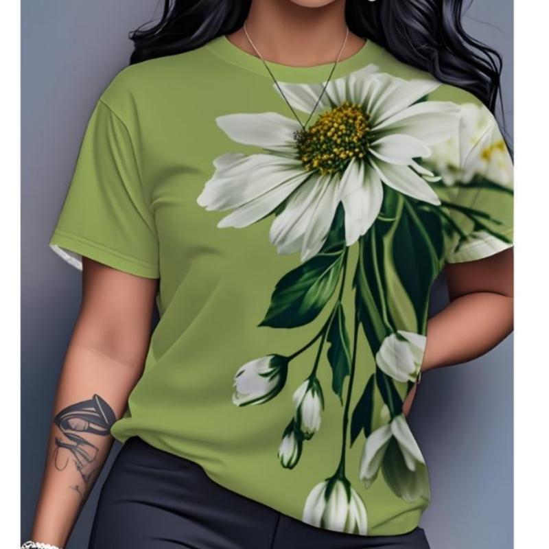 Summer Round Neck Flower Print Comfortable Fashionable Oversized Breathable Casual Women's T-shirt