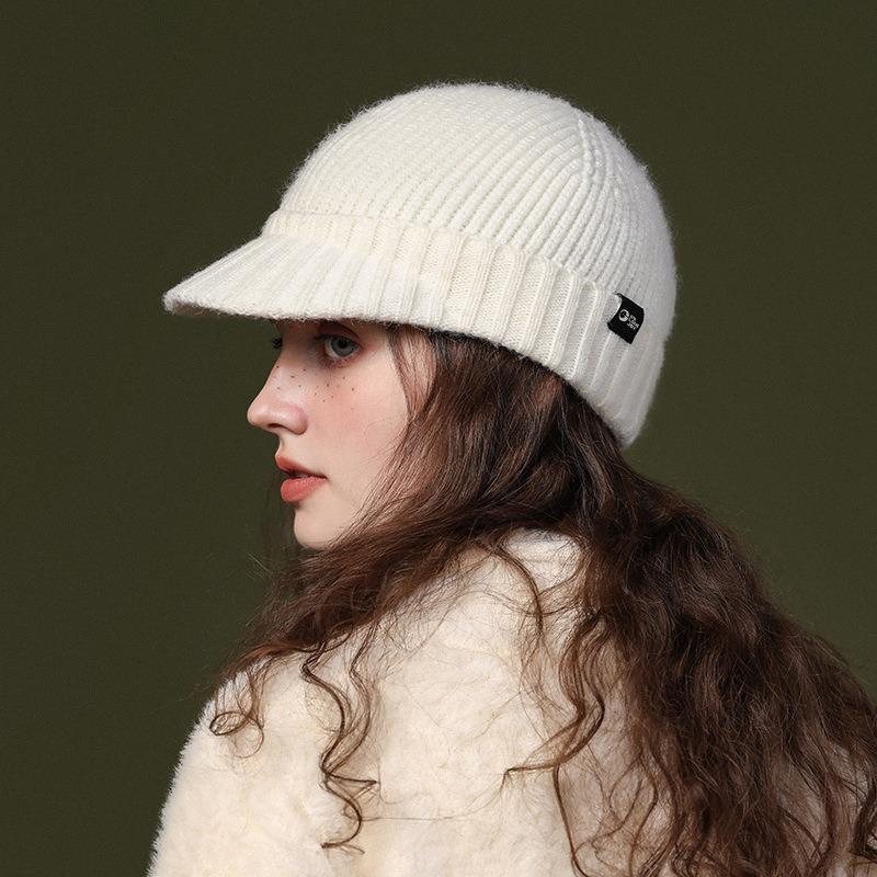 Fashion Autumn and Winter Short Eave Knitted Mao Line Duck Tongue Hat Women Thickened for Keep Warmth Ear Protection Knitted Hat