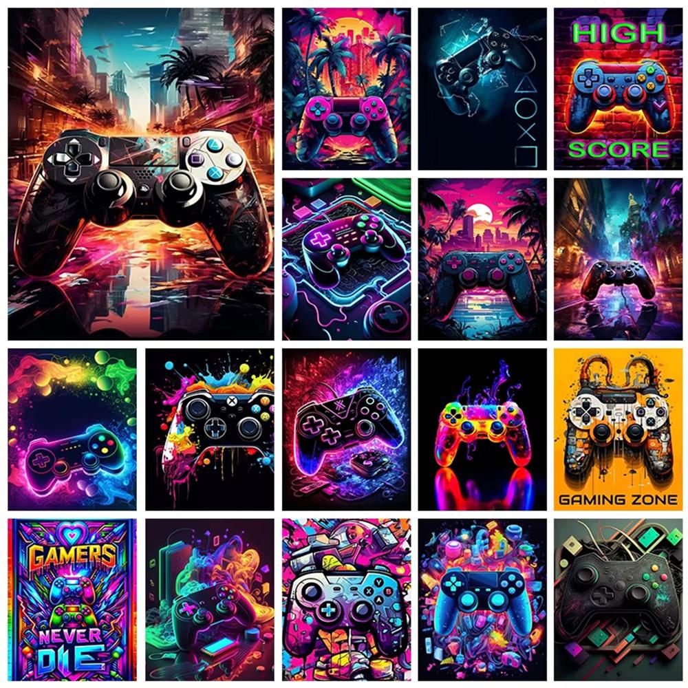 Colorful Neon Light 5D DIY Diamond Painting Kit Game Machine Sticking Diamond Embroidery Handmade Mosaic Home Decoration