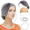 Package includes,kids 100 days of school costume for girls ,grandma costume,pearls necklace,eyeglass,eyeglass chain,wig,hairnet.