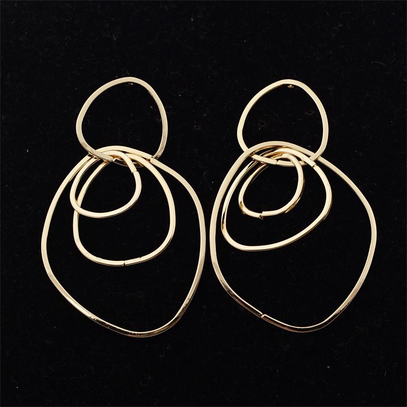 Big Metal Multilayer Circle Round Drop Earrings for Women Irregular Geometric Line Hollow Jewelry