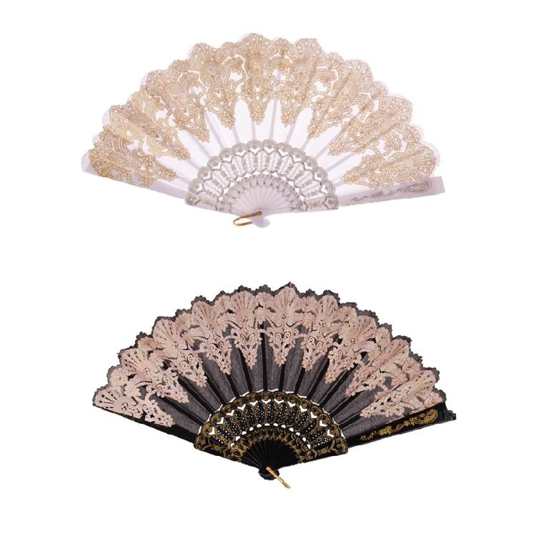 Golden Floral Folding Hand Fan Vintage Cloth Fabric Fans Chinese Foldable Hand Fan for Wedding Festival,Dances,Party