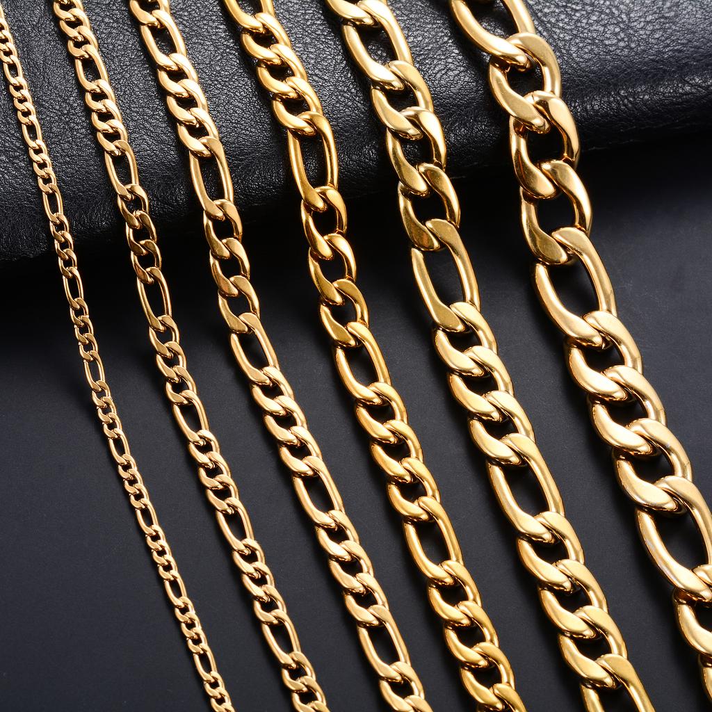 Classic Gold Color Plated Stainless Steel Necklace Link Figaro Chain for Men Women Metal Choker Neck Jewelry Accessories Gift