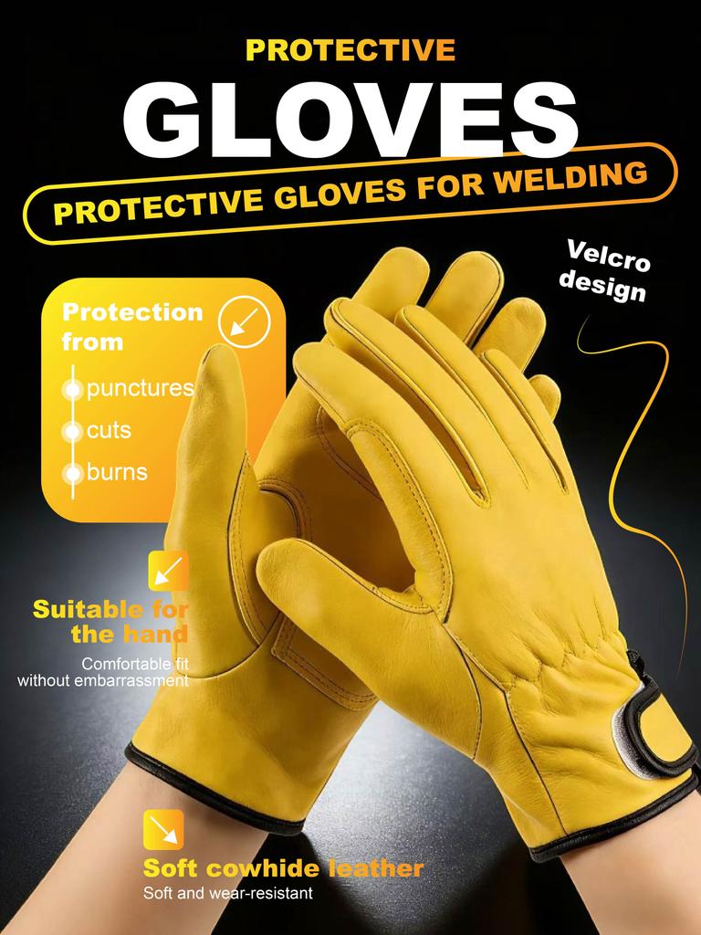 Welding Protective Gloves - Soft Cowhide Leather Work Gloves (Cut/Puncture/Burn Resistant)