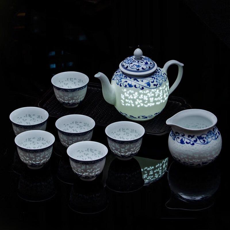 Shangqi Hand-Painted Blue and White Hollow Ceramic Tea Set