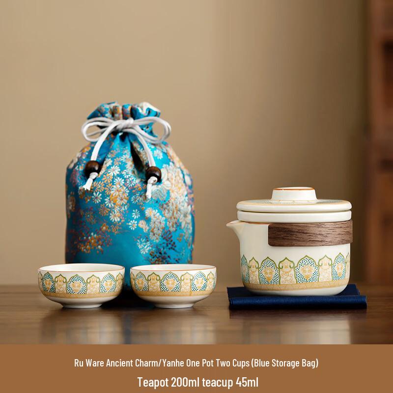 ModelRu Kiln Ancient Charm Set - Yanhe Pot, 2 Cups, Blue Towel & Bag