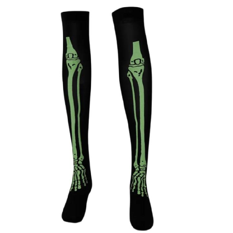 Halloween Skeleton Knees High Socks Skeleton Gloves Luminous Stocking Socks Halloween Cosplay Accessories