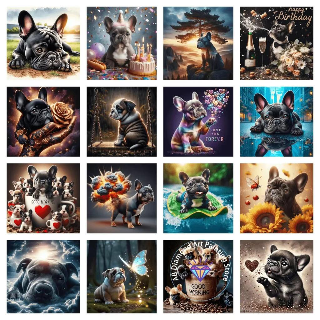 Cute French Bulldog Animal Diamond Painting Kit 5D DIY Dog Diamond Embroidery Cross Embroidery Handmade Art Gift Home Decoration