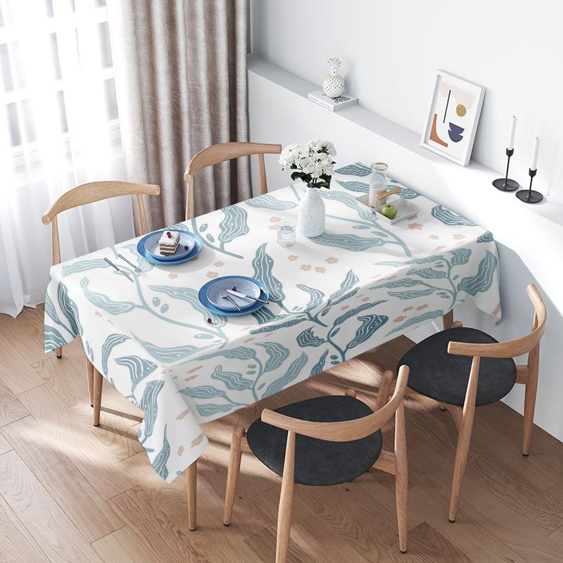 Modern Nordic Tablecloth Blue Waves Design For Dining Room Decoration Home Textiles White Light Blue 160X240Cm