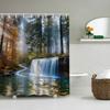 1/4 Forest Waterfalls Print Shower Curtains, Toilet Seat Decoration, Shower Curtain with Carpet and Toilet Lid, 70.8x70.8 Inch