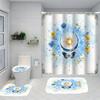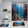 1/4 Marine Organisms Print Shower Curtains, Toilet Seat Decoration, Shower Curtain with Carpet and Toilet Lid, 70.8x70.8 Inch