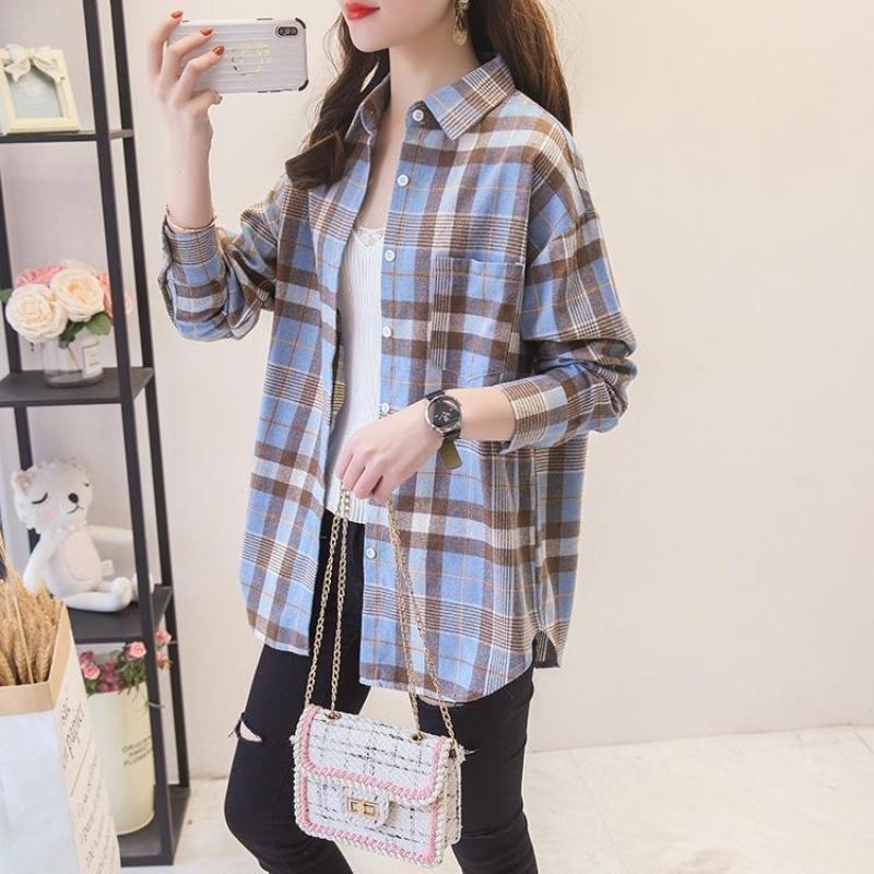 Women's Spring and Autumn Long-sleeved Loose Brushed Plaid Shirt