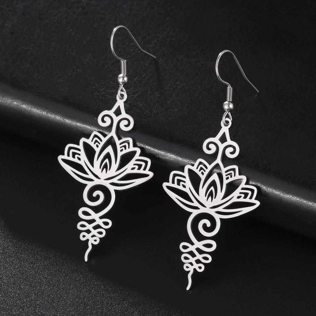 Unalome Pendant Earrings Hippie Stainless Steel Yoga Lotus Flower Drop Earrings for Women Unique Buddhism