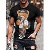 Summer Street Fun Teddy Bear 3D Digital Printed Round Neck Short Sleeve Men's Sports Leisure Comfortable Loose T-shirt