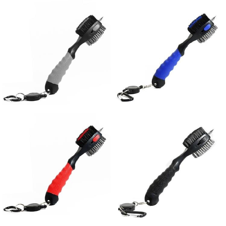 Double Sided Golfs Head Brush with Spikes for Cleaning Grooves Shoes Golfs Club Cleaner Brush with Retractable Carabiner