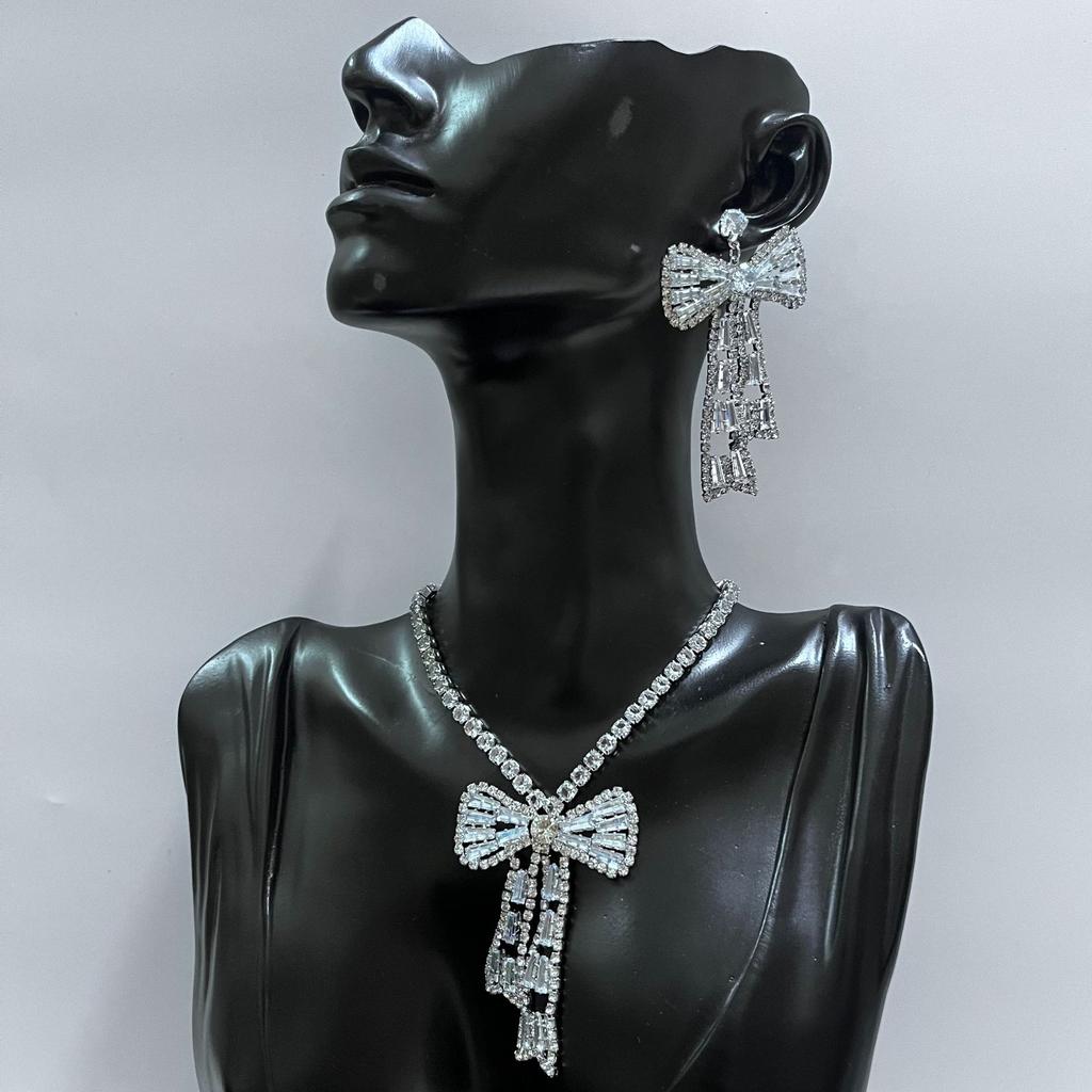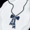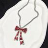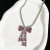 Korean Bow Necklace Ins Full Diamond Tassel Temperament Light Luxury Rhinestone Simple Neck Chain Collarbone Chain Fashion Jewelry