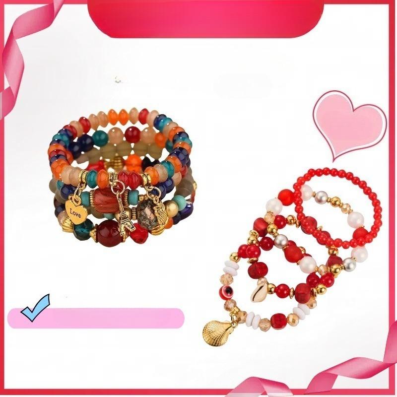 Trend, Simple Metal Multi-Pendant Pendant, Candy Beads Multi-Layer Fashion Temperament Bracelet