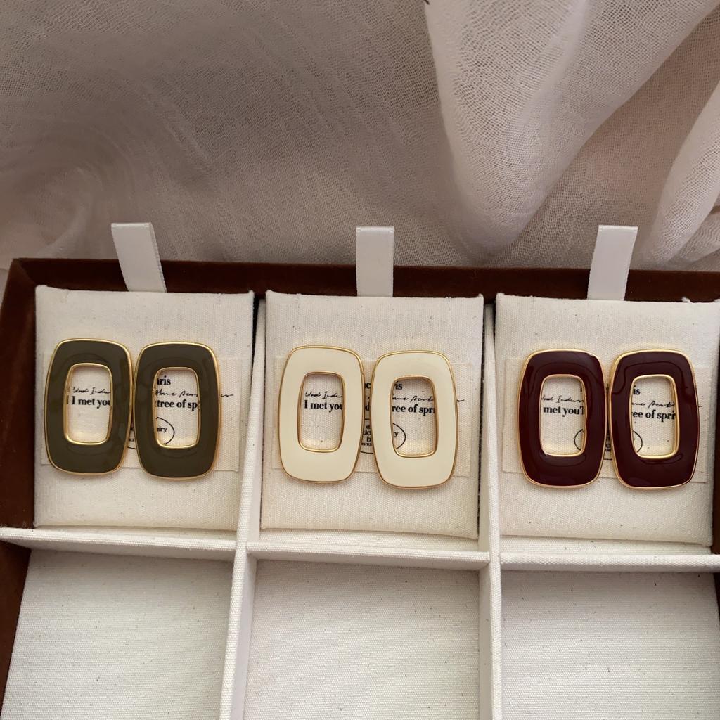 Simple Rectangular Noble Luxury Drop Glaze Stud Earrings Versatile Fashion Earrings Niche Design High-End Temperament Earrings