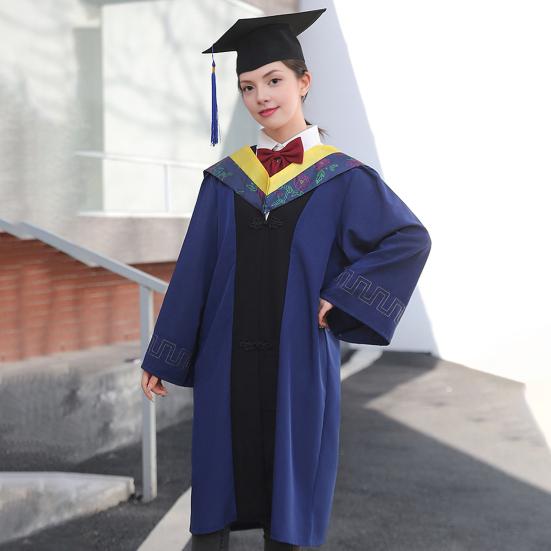 Graduation Gown with Cap Tassel Long Sleeves Anti-Wrinkle Traditional Academic Robe Ceremony Graduation Attire