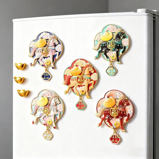 Vibrant National Trend Aesthetic: Showcasing traditional auspicious clouds, the iconic "Fu character," and dynamic horse shapes, this magnet embodies rich Chinese cultural elements. The bright, vivid colors enhance festive atmospheres like the Spring Festival, adding an eye-catching touch to any refrigerator or display area.