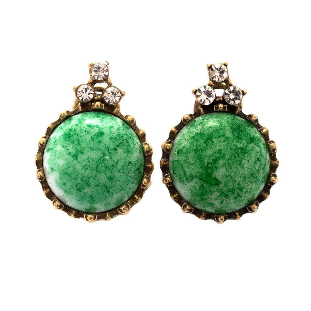 Vintage Vintage Classic Inlaid Green Natural Stone Oval Earrings Versatile Do Old Women'S Stud Earrings Silver Needle