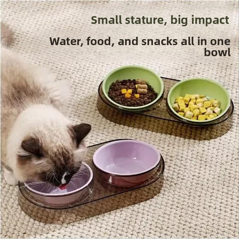 Cat Bowl, Dog Bowl, Slanted Mouth To Protect The Cervical Vertebrae, Double Bowl for Drinking Water, Cat Food Bowl, Cat Rice Bowl, Pet Bowl