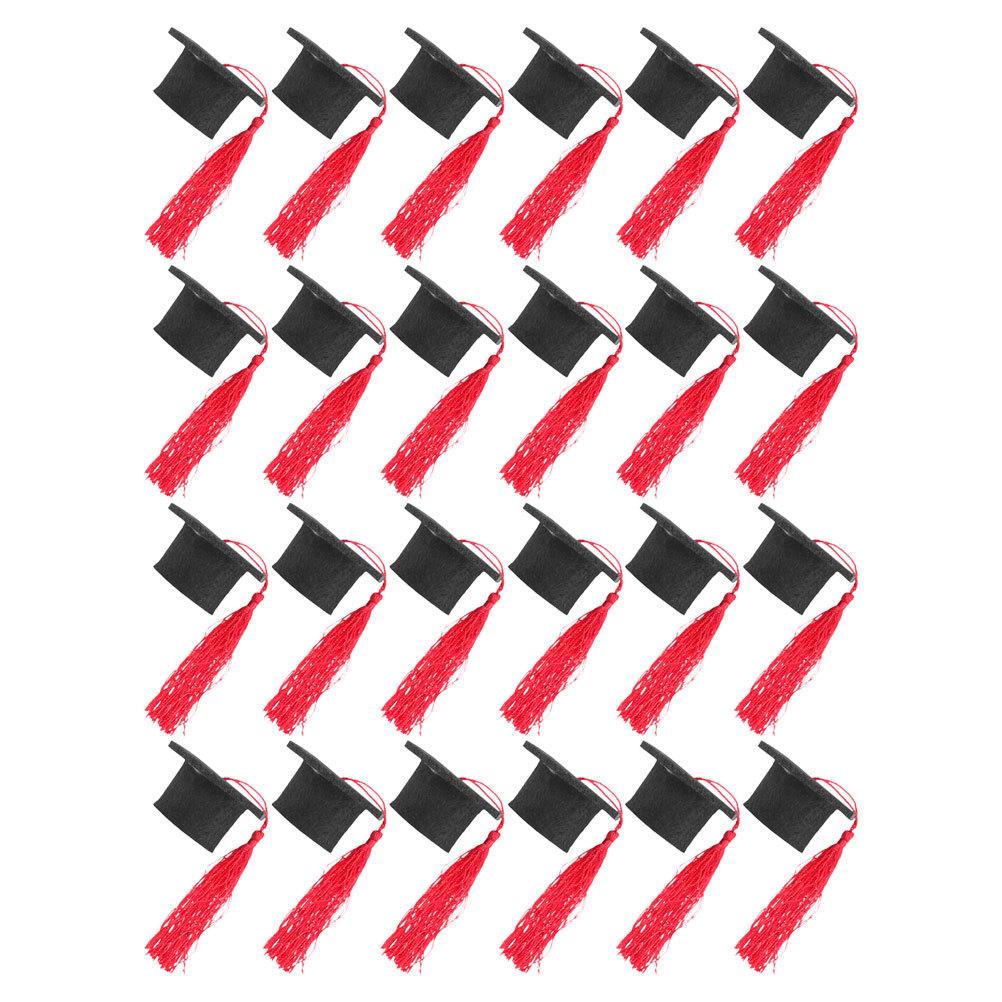 24Pcs Mini Graduation Hats with Tassel Red Felt DIY Cupcake Toppers for Class of 2025 Party Favors Bottle Top Decor Wine