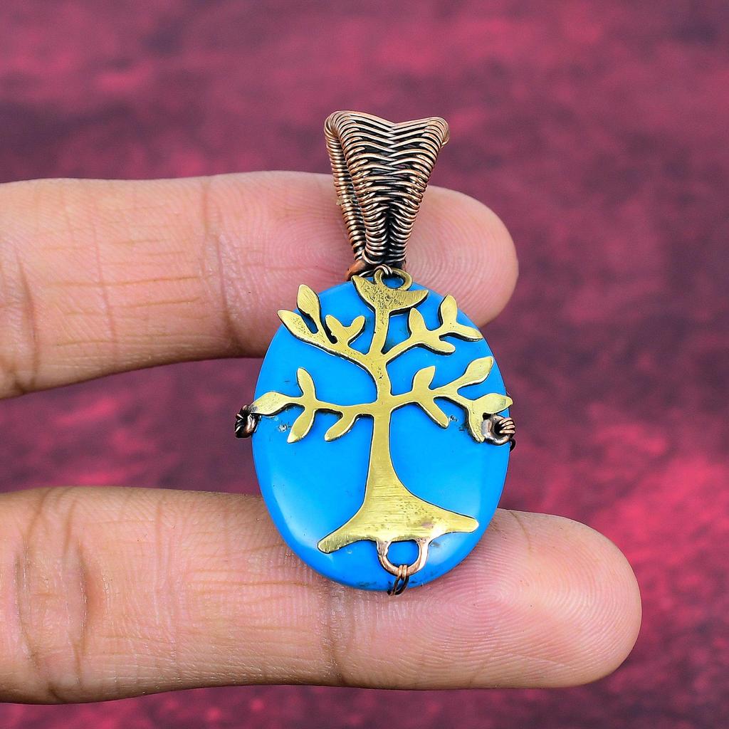 Tree Of Life Sleeping Beauty Turquoise Pendant Copper Wire Wrapped Gemstone Pendant Handmade Jewelry