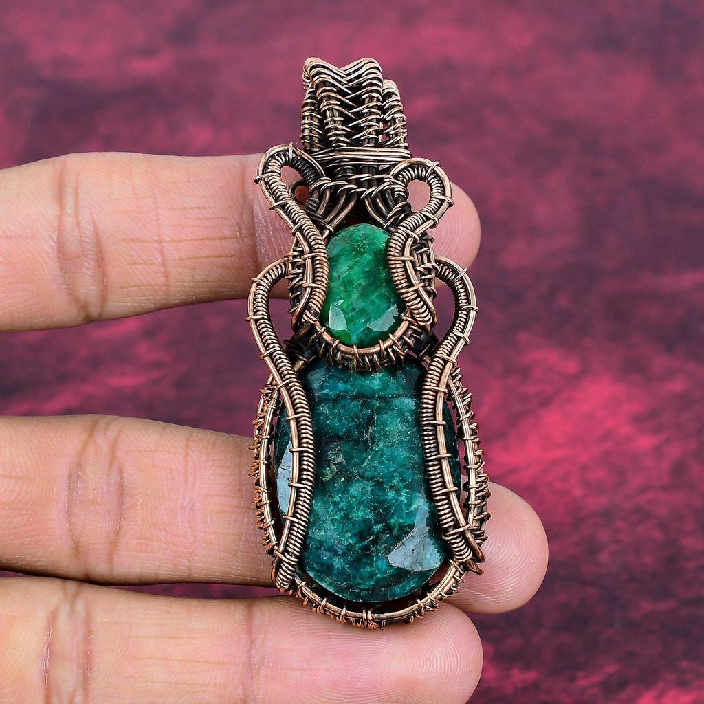 Faceted Zambian Emerald Pendant Copper Wire Wrapped Jewelry Gemstone Pendant