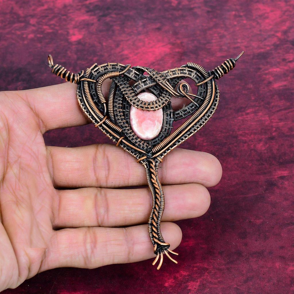 Rhodochrosite Gemstone Pendant Handmade Pendant Copper Wire Wrapped Jewelry