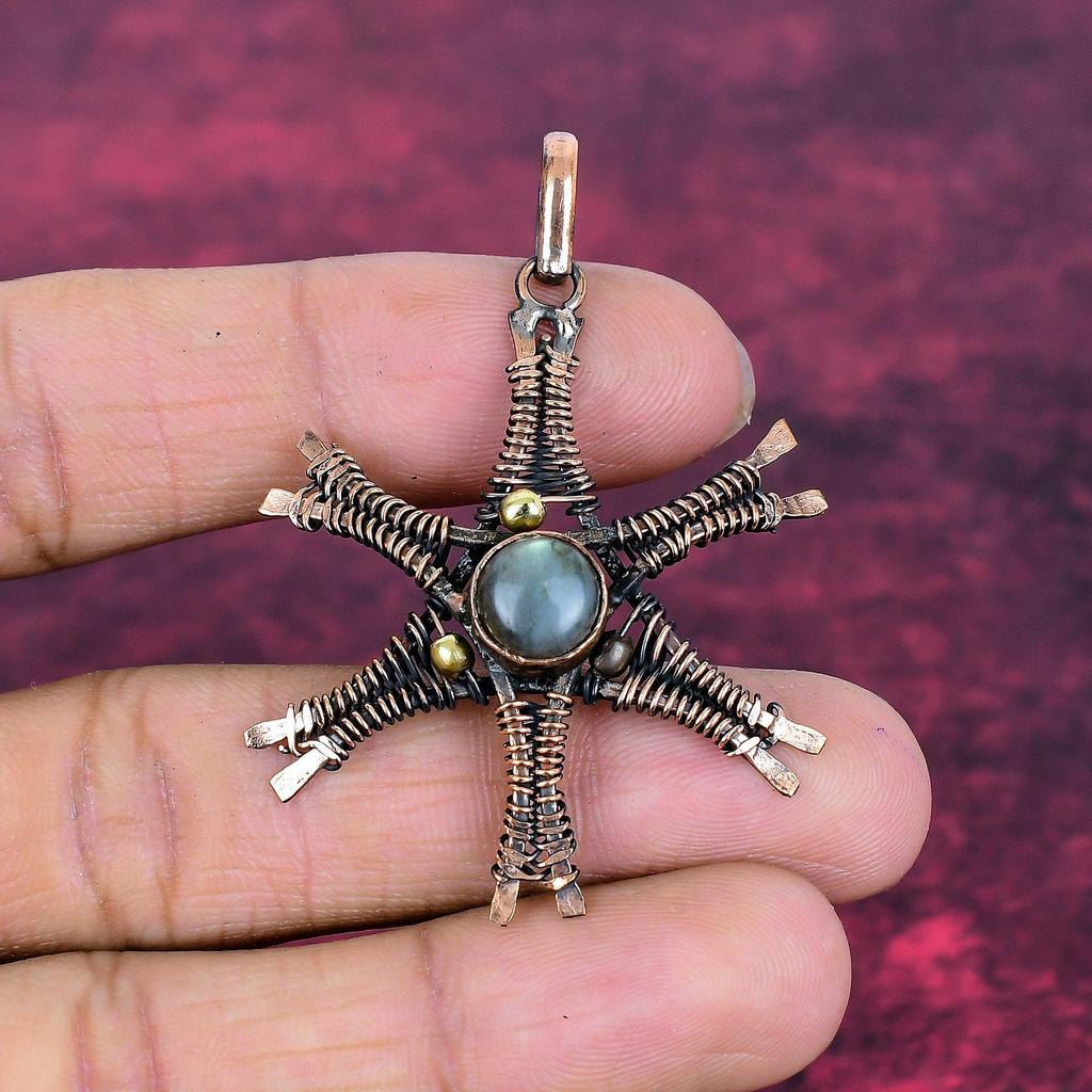 Labradorite Gemstone Pendant Copper Wire Wrapped Jewelry Handmade Star Pendant