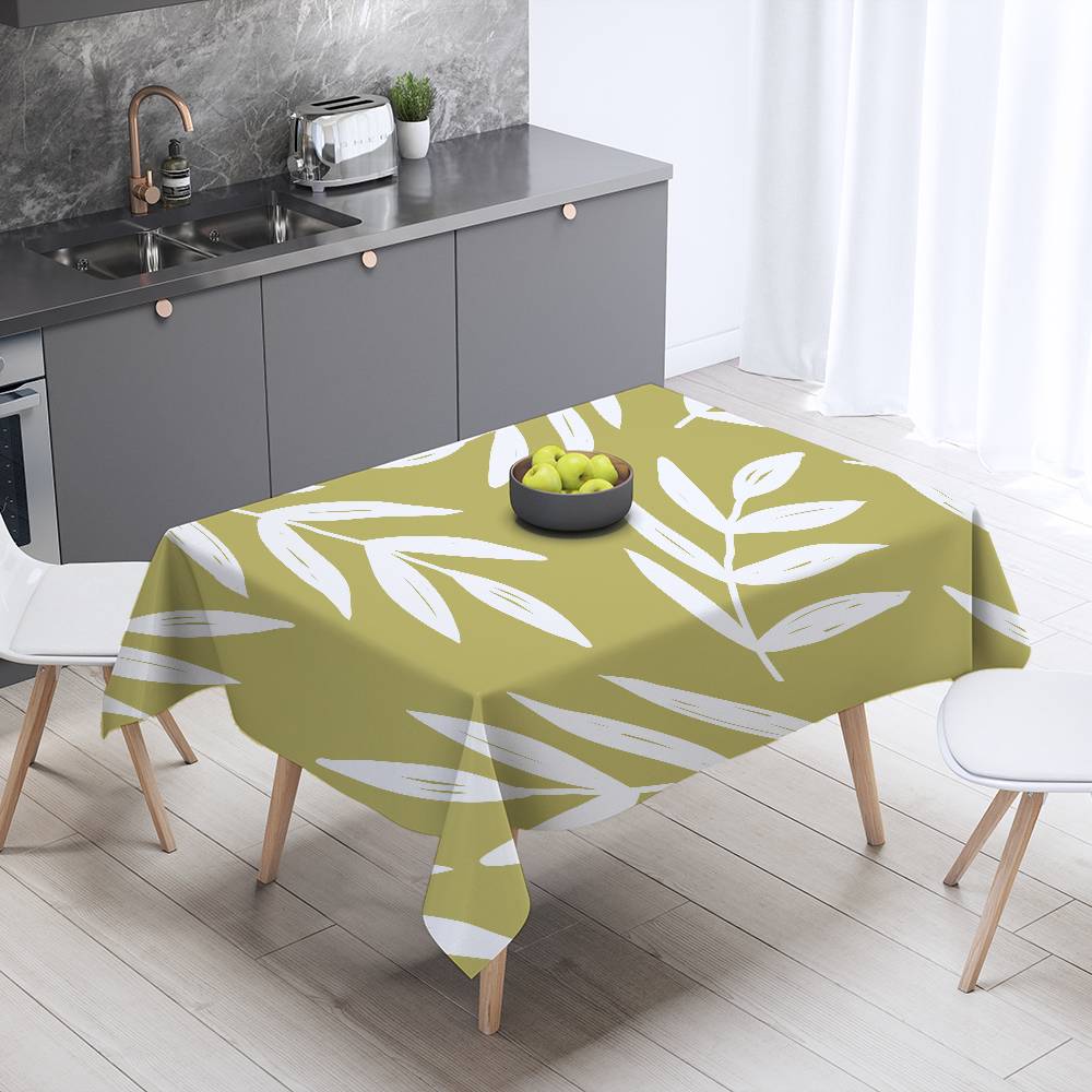 Plant Leaf (Green) Home Tablecloth - Waterproof, Anti-Stain, Rectangular For Dining Decor & Accessories