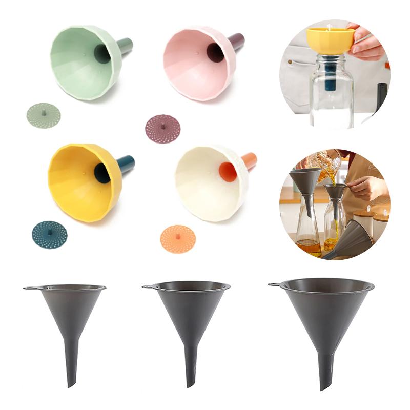 1pc Multifunctional Kitchen Funnel Silicone Portable Condiment Funnel Wine Oil Rice Funnel Tool Spill Filter Kitchen Supplies