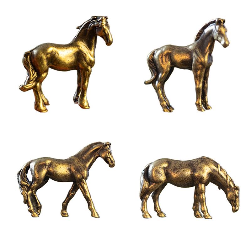 1PC Antique Brass Solid Horse Figurines Miniatures Feng Shui Ornaments Copper Zodiac Animal Mini Desktop Decoration Crafts