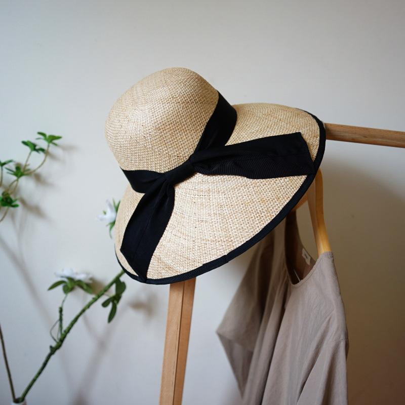 French Retro Hepburn Treasure Grass Woven Bell-Shaped Basin Hat Top Hat Women'S Summer Sunshade Sunscreen Vacation Beach Big Straw Hat