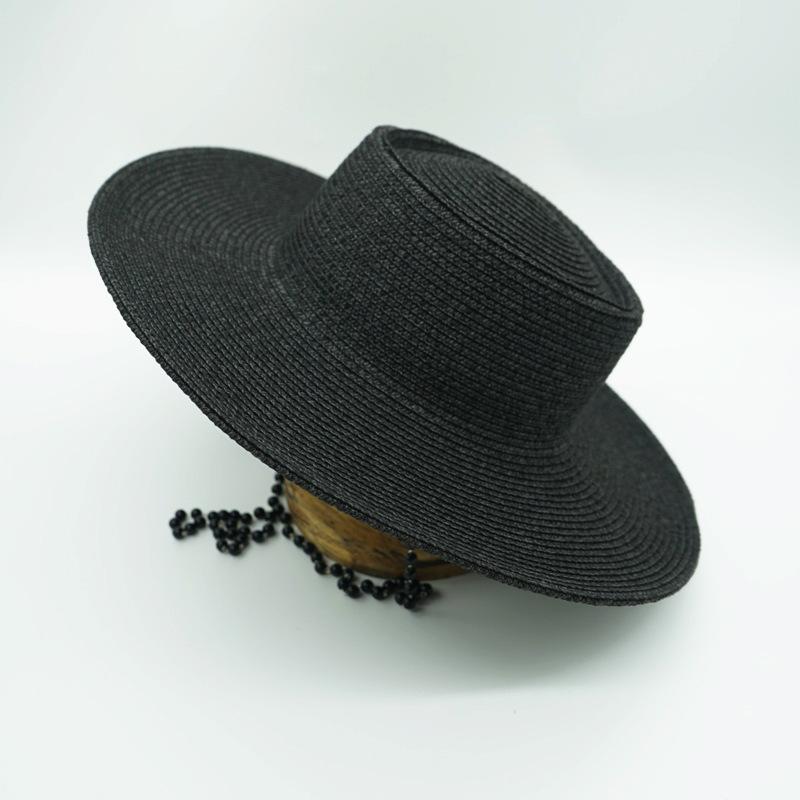 Street Shot Black Pearl Chain Flat Top Top Top Hat Women'S Summer French Retro European And American Wide Brim Sunscreen Straw Hat Foreign Trade Ins