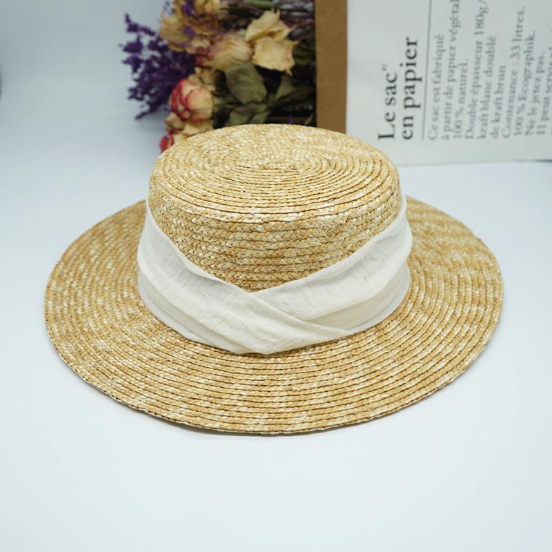 Foreign Trade French Retro Japanese Straw Flat Top Top Top Hat Men And Women Summer Panama Wide Brim Straw Hat Shading Holiday Beach