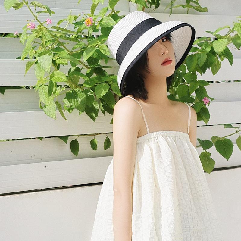 Summer Female Foreign Trade Small Fragrant Hepburn French White Black Edge Fisherman Top Hat Shading Holiday Beach Sun Straw Hat